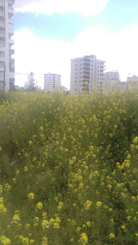 Sarı çiçek denizine dönmüş. Her taraf sarı çiçek. Yörede hardal olarak bilinen çiçek bahar mevsiminde kendiliginden yetişiyor…