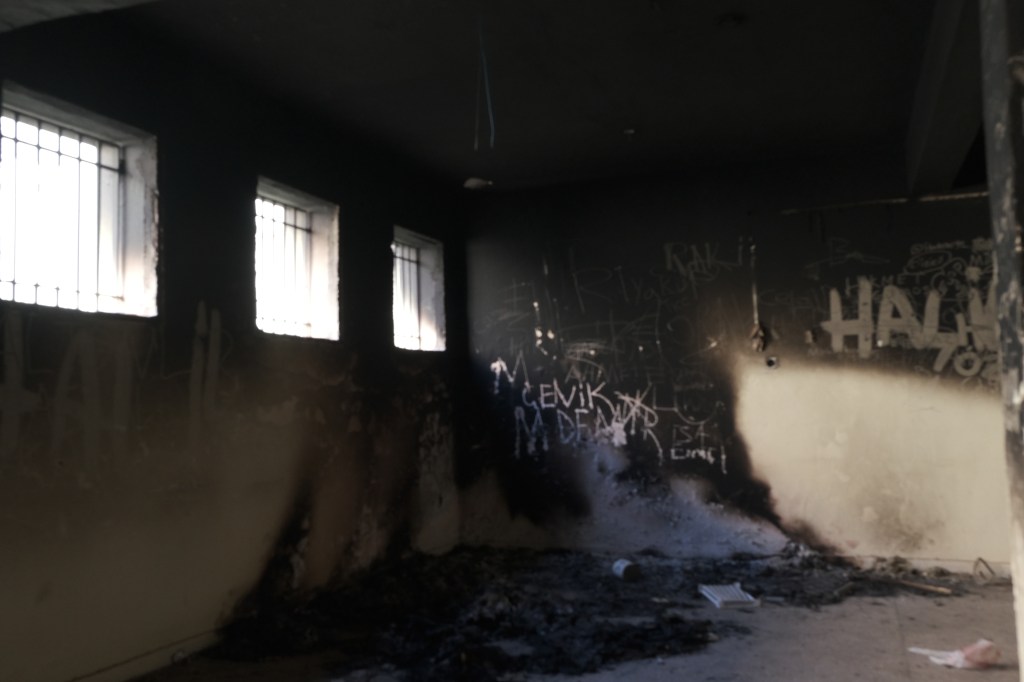 Neyse ki girişte ne elleri tetikte bekleyen askerler, ne gardiyanlar vardı. Bir iki belediye yetkilisi dışında ıssızlık ve terk edilmişlik göze çarpıyordu. Yerlerde bulunan cam kırıkları arasında içeriye ilk adımı attığımda çok sayıda evrak ve dosyanın koridorlarda etrafa savrulduğuna hayretler içinde tanık oldum.
